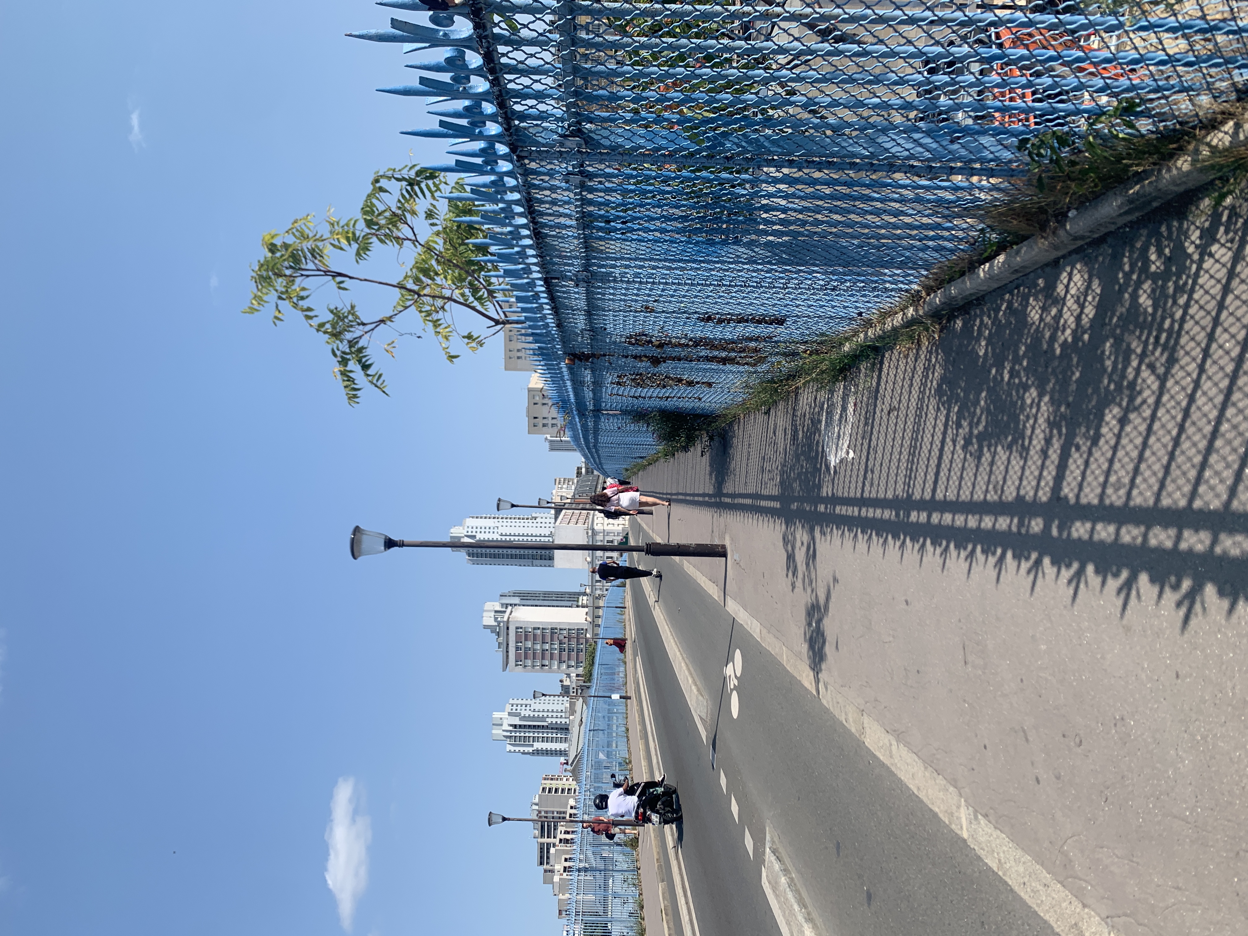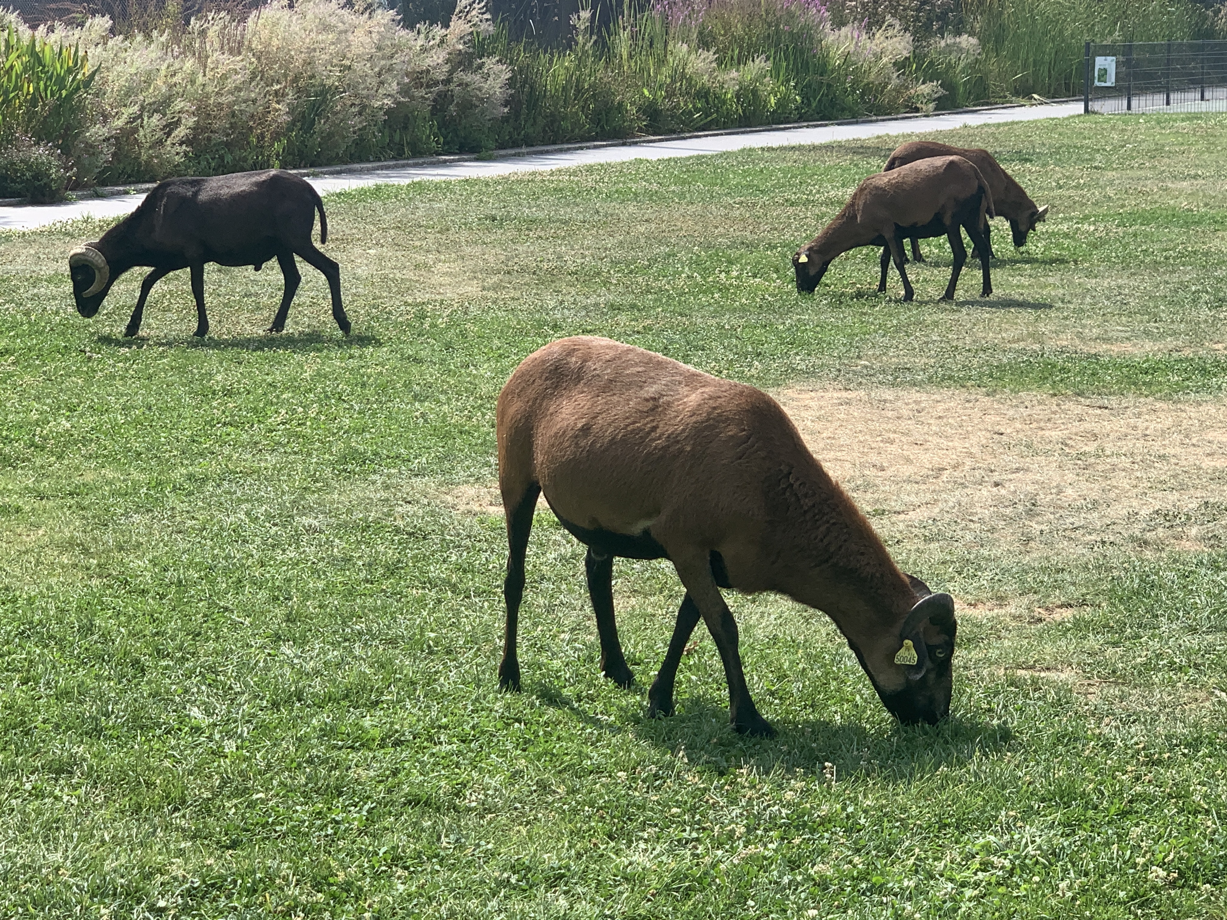Le parc, longtemps stigmatisé par le choix d’y regrouper les toxicomanes présents dans le quartier, n’est pas nécessairement "apaisé". En cet été, une seule entrée sur les trois existantes est ouverte, ce qui ne facilite pas la circulation, et l’ambiance peut devenir facilement électrique, rue d’Aubervilliers. On voit cependant entrer et sortir des familles, des joggeuses. À l’ombre des arbres, des groupes d’hommes (tibétains ?) jouent. Les chèvres de la ferme urbaine paissent par moments sur les pelouses.