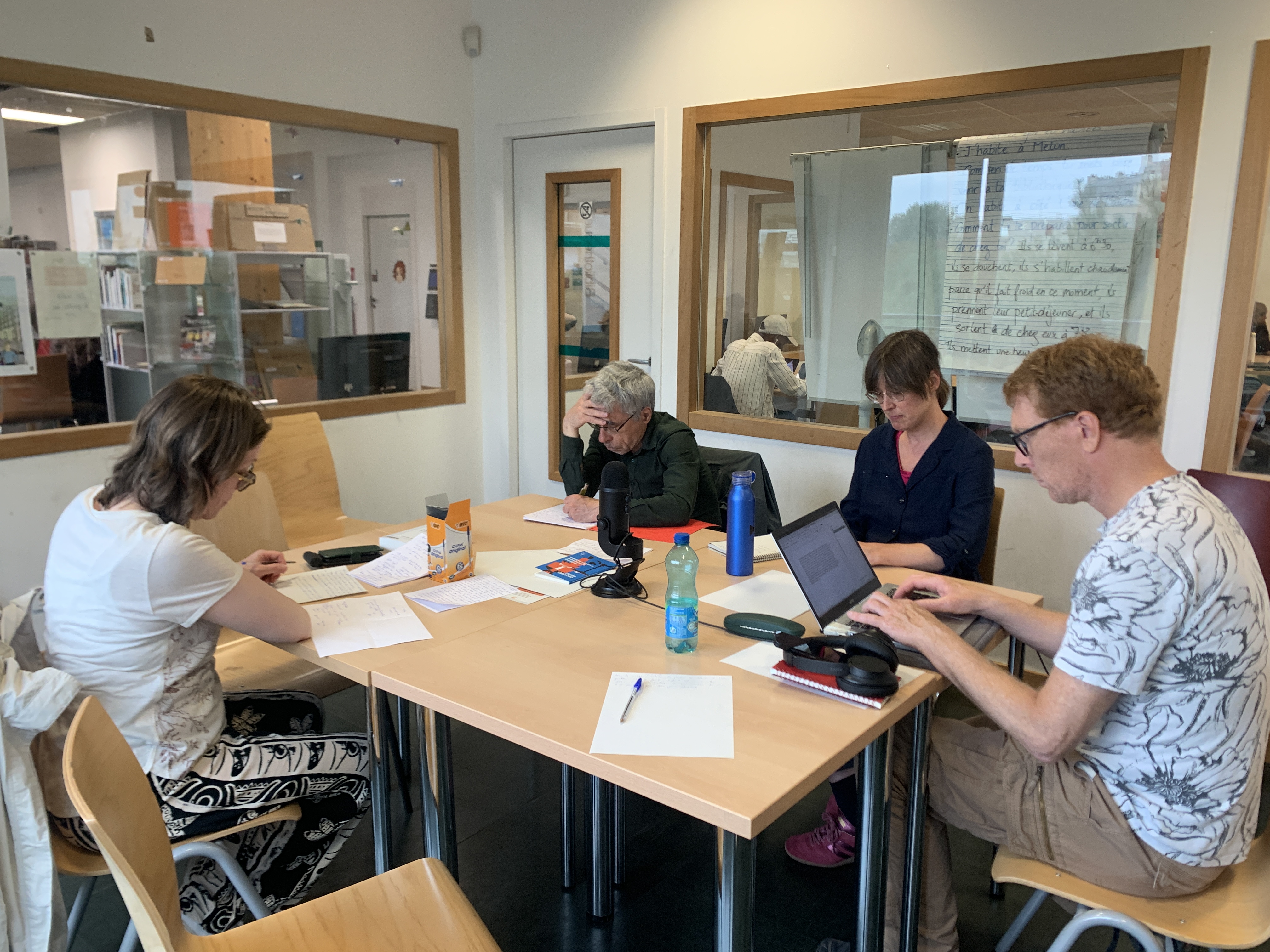 Puis, grâce aux partenariats menés avec les bibliothèques Vaclav Havel et Hergé, qui nous accueillent, ainsi que la bibliothèque Claude Levi-Strauss qui relaie notre action, voilà les participant.es invités à écrire, lire leurs textes, raconter quelque chose de leur quartier et se laisser enregistrer.