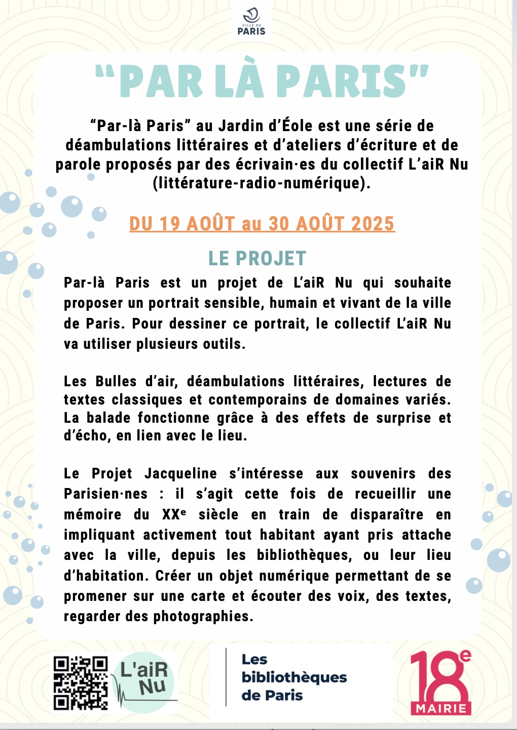 Bulles d’aiR d’août dans le 18e